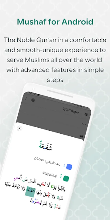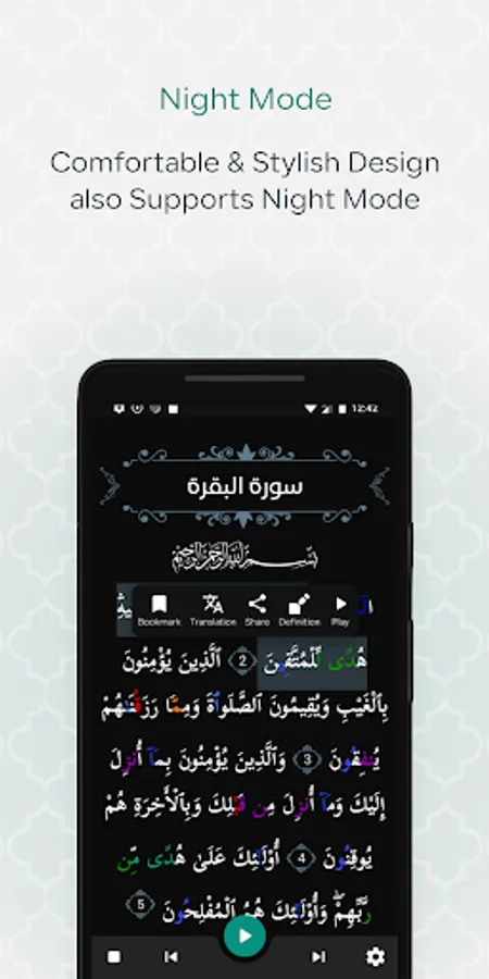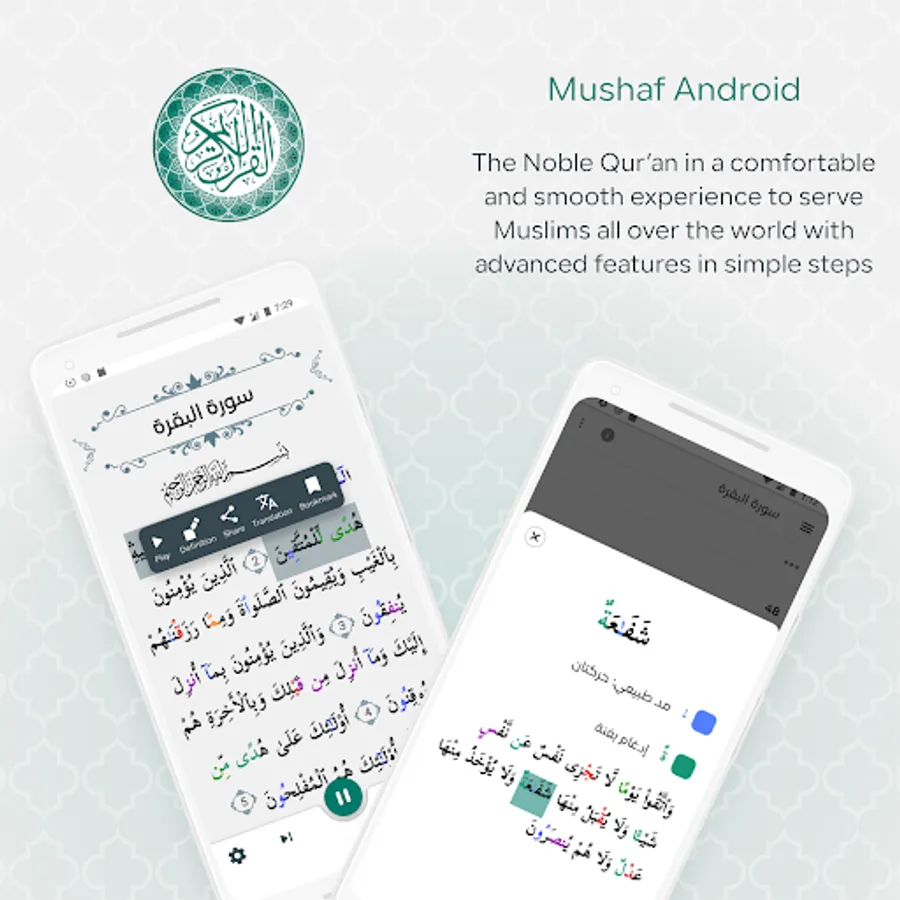 Mushaf is powerful Quran app that supports more than 37 languages – it has Quran word by word definition for Quran words – A library for translation and Tafseer that supports autosave. Read the Quran, search, bookmark verses and translation, dark mode, a very advanced audio framework has been used to play recitation which gives powerful features out of the box like repeating verses, stream or download, and a gapless recitation.