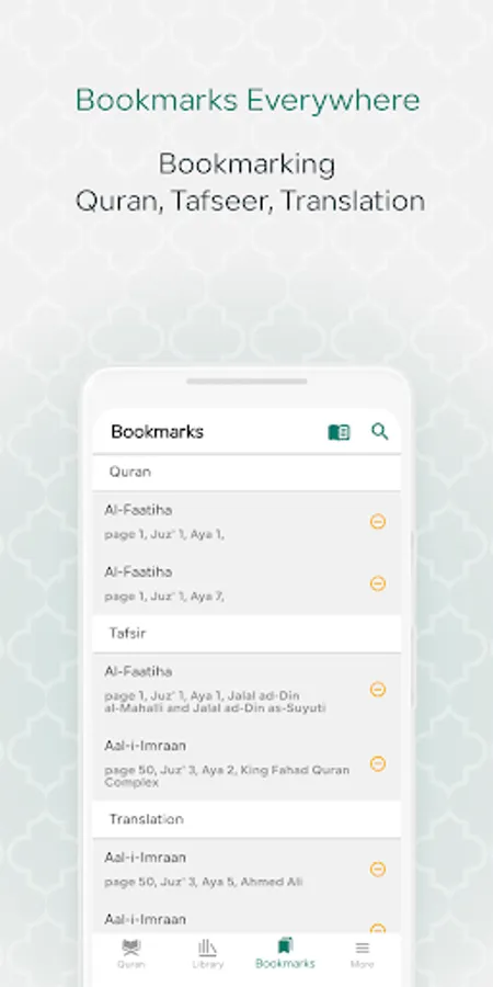 7. Save bookmarks in Quran and Tafseer/Translation.