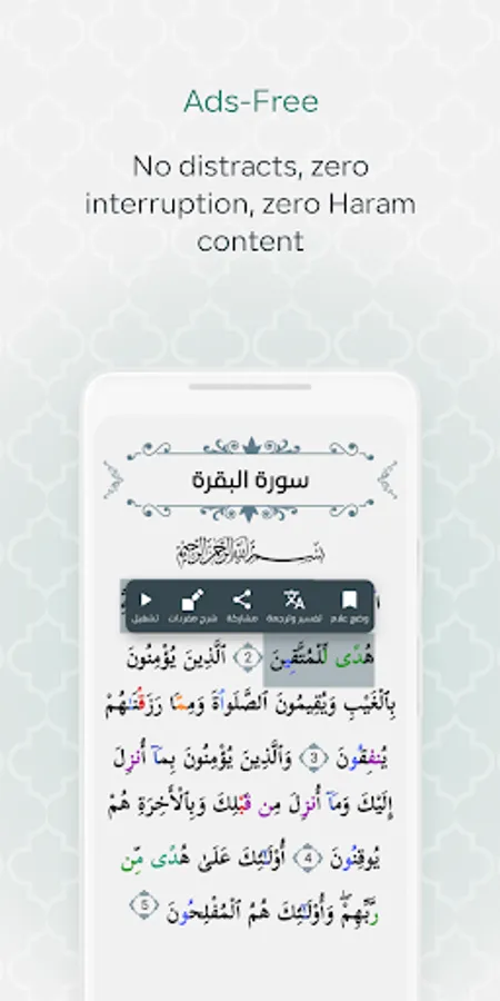 Stream (play online) and download Ayat so that you can listen with or without the internet in addition to the ability to modify audio quality in order to save internet bandwidth.