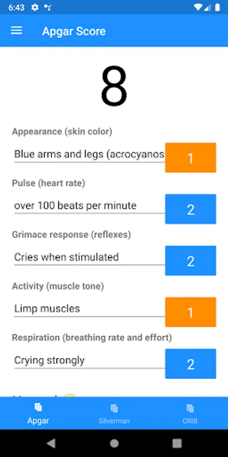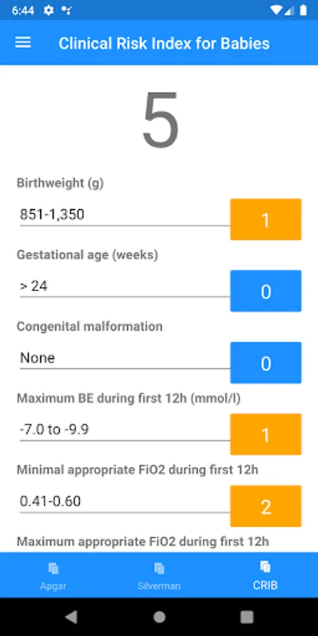 Application intended for medical / paramedical staff in pediatrics / neonatology.