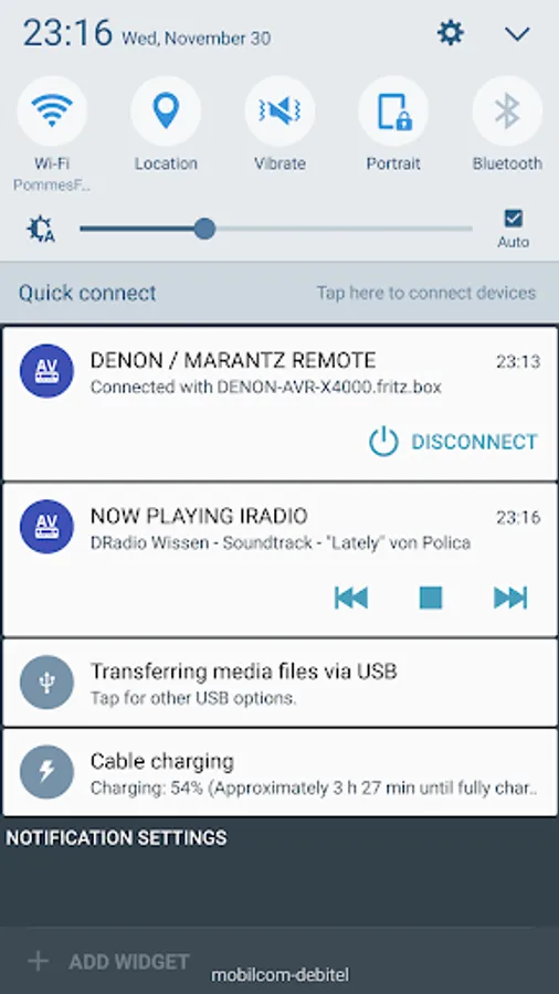 - With the widgets for your home screen, you can your Denon / Marantz receiver on / turn off, input select, start favorites, music and control the volume.