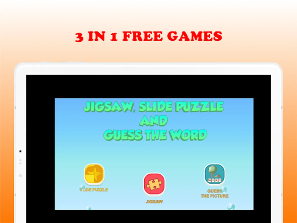 Now you can have 3 games in the same application on your device. This game has 3 free offline mini games. Use your intelligence to beat the 3 fun free games. There is a jigsaw game, a puzzle game and a guess the words game. The 3 mini games are fun to hang out and play with your friends or family.
