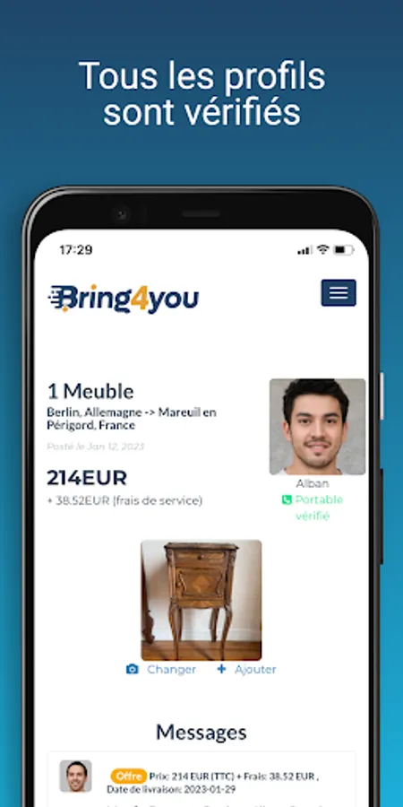 The Bring4You application allows: