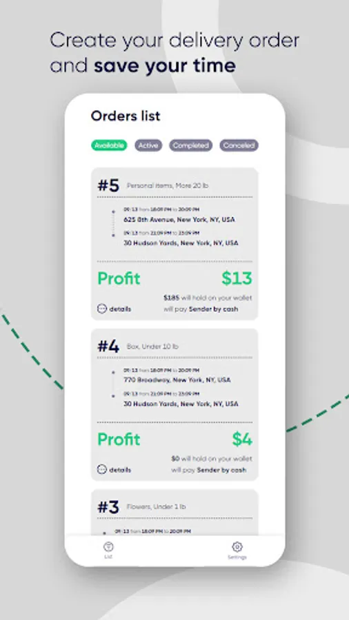 Easily monitor your orders, see the status, active orders, contact the courier if necessary.