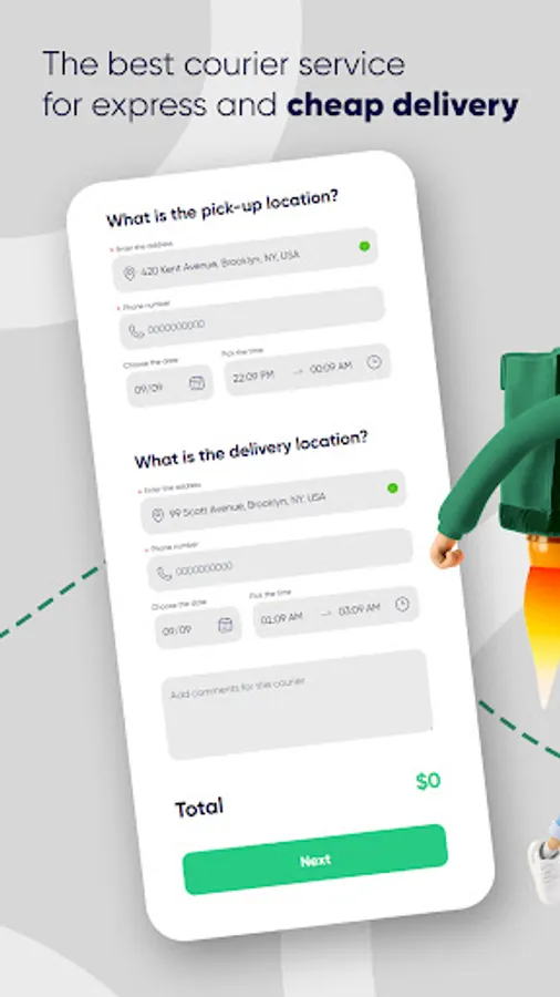 Just specify a convenient for you place and time where the courier will pick up parcel and address of the recipient with the exact time of delivery. Your parcel will be in the right place at the right time.