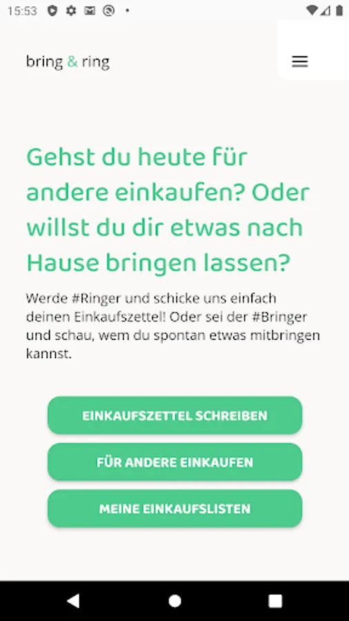 Let your neighbors bring your purchases with you. Simply register and place shopping lists in the app. Anyone who goes shopping near you can take your order and bring it with you - it only costs you a thank you in the form of a small tip. The deliverer receives this cashlessly together with his expenses via the app or in cash.