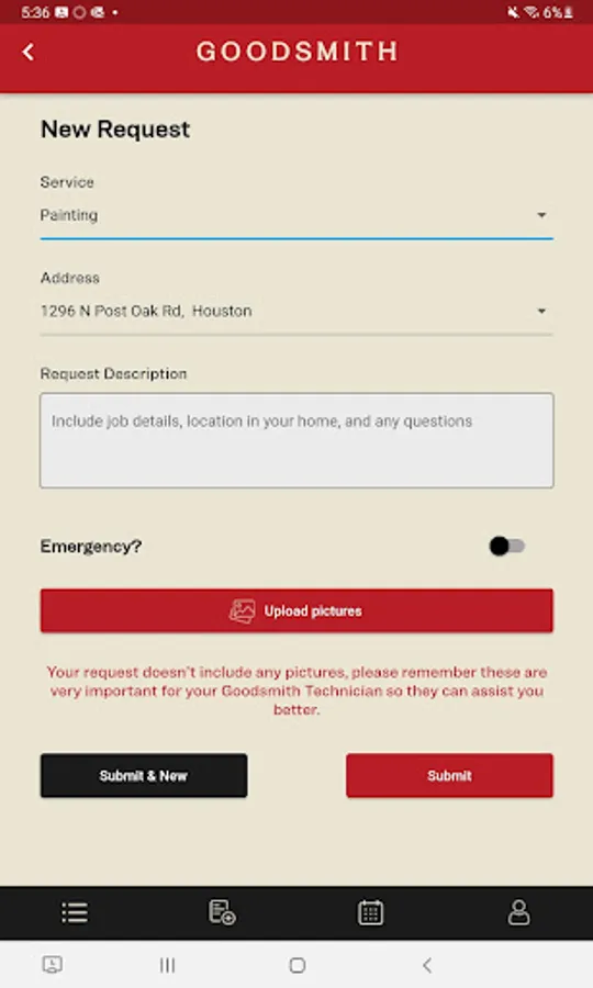 With My Goodsmith, you will have access to request different repair and maintenance services for your home in a personalized and reliable way. You can schedule services, review your status and history, and coordinate with experts. You can also pay invoices and in case of an urgency, request an emergency service. With the App, you will have access any time and anywhere to Goodsmith services with just a click using your smart device.