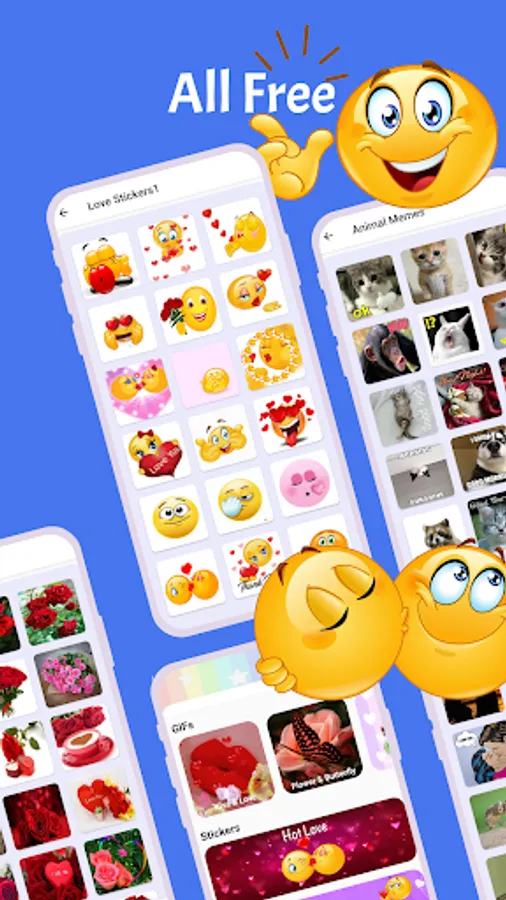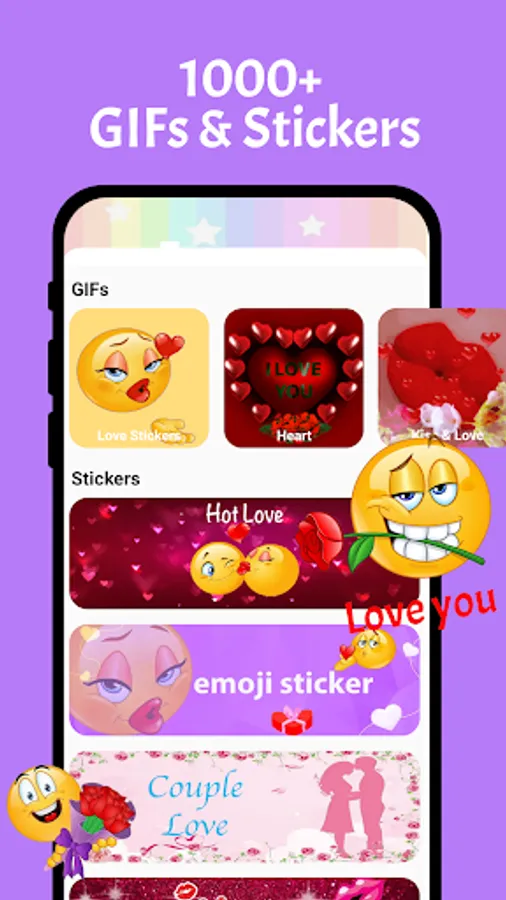 It has a very rich collection of stickers Gifs, Gif emojis, love stickers, talk stickers, kiss emoji, etc., all for free.