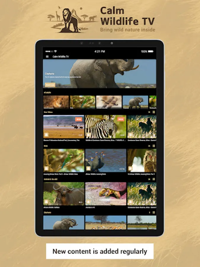 Enjoy 24/7 availability of animals wildlife videos on different platforms and gadgets. Calm Wildlife TV is an video channel that shows you the real life of wild animals in their natural habitat. Explore the mysteries of wildlife together with Calm Wildlife TV, a #1 video channel for nature and wildlife fans.