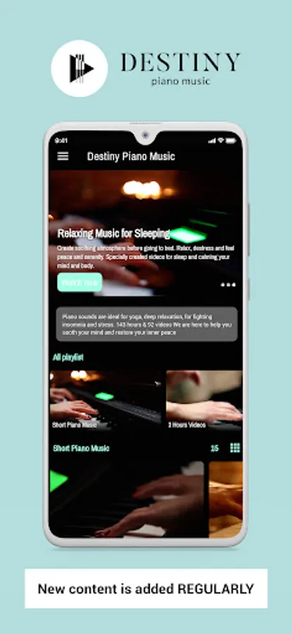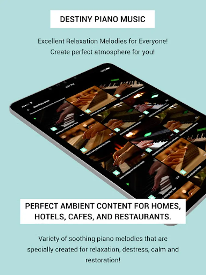 Get in touch with your emotions, express them in a new way and feel happy together with Destiny Piano Music. Enjoy the best classical melodies and beautiful piano arrangements, use Destiny Piano Music as a perfect relaxation aid!
