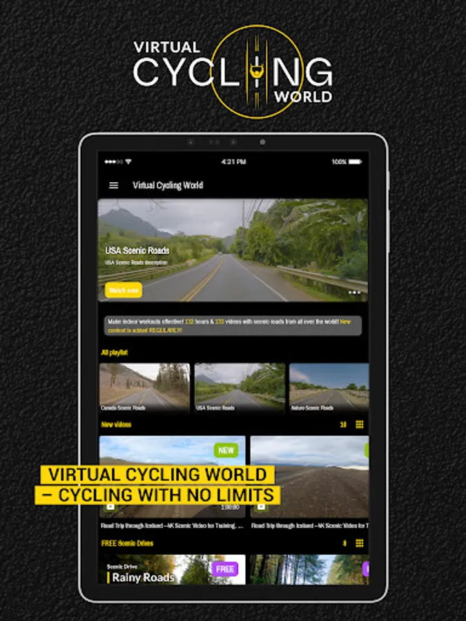 - Stream more than 140 of cycling scenery videos. New content is added REGULARLY