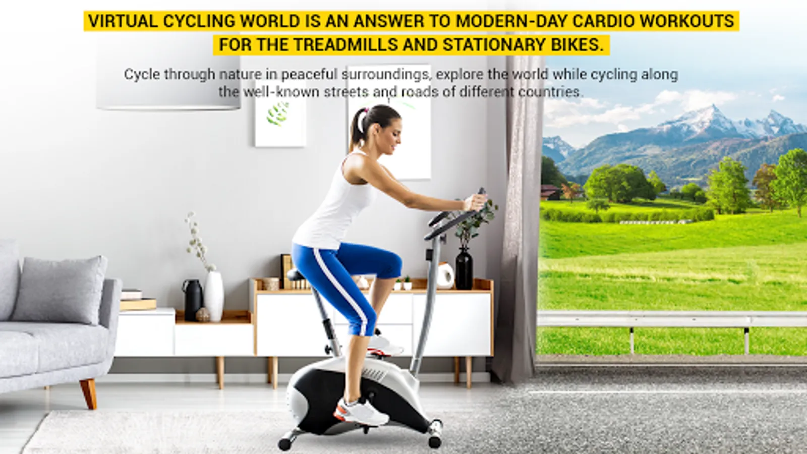 Virtual Cycling World is an answer to modern-day cardio workouts for the treadmills and stationary bikes. Ride your bike through nature in peaceful surroundings, explore the world while cycling along the well-known streets and roads of different countries.