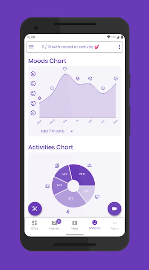 Daylee is built upon a short daily videos, called clips, which are created from your video, photo, drawing, or text. Clips can be 0.5, 1, 1.5, 2, 3, 5 and custom length (up to 10s) long. Daylee then easily compiles these clips into beautiful life movies for you. Thanks to Daylee, clips can be improved with several metadata information like mood or activity emojis, caption, location or text note. All this information are really useful for you in the next app features like Dalyee Map, Moods charts, etc. It's easy. Give it a try π.