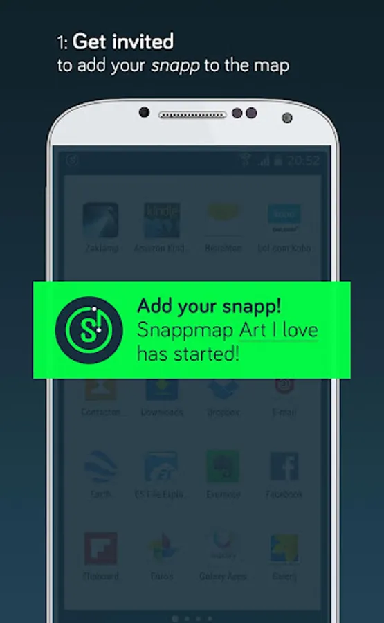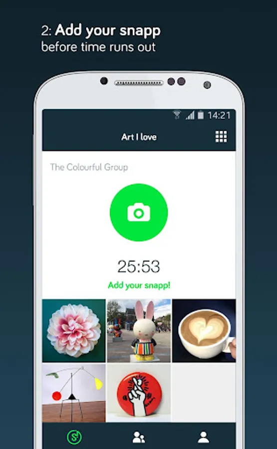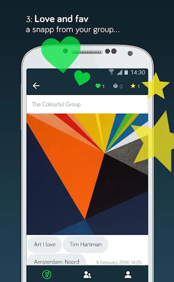 Activate your group by inviting them to add snapps (photos) to a snappmap. You decide on the topic of the snappmap - this can be a word or a short sentence - and the time frame. Group members receive the invitation on their phones and are prompted to make a photo of their interpretation of the snappmap. All group members can view and like the snappmap.