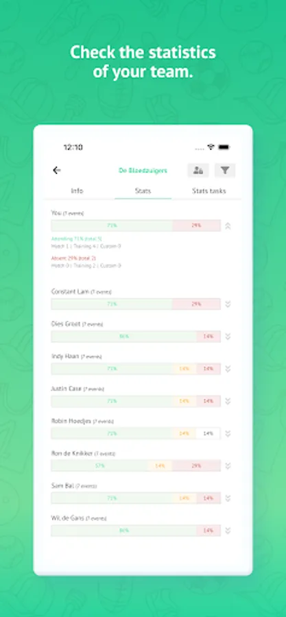 - Keep track of team statistics regarding attendance and completed tasks.