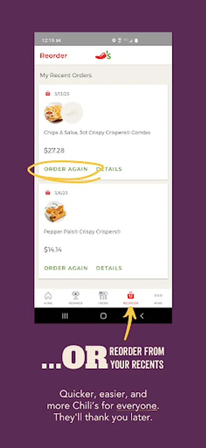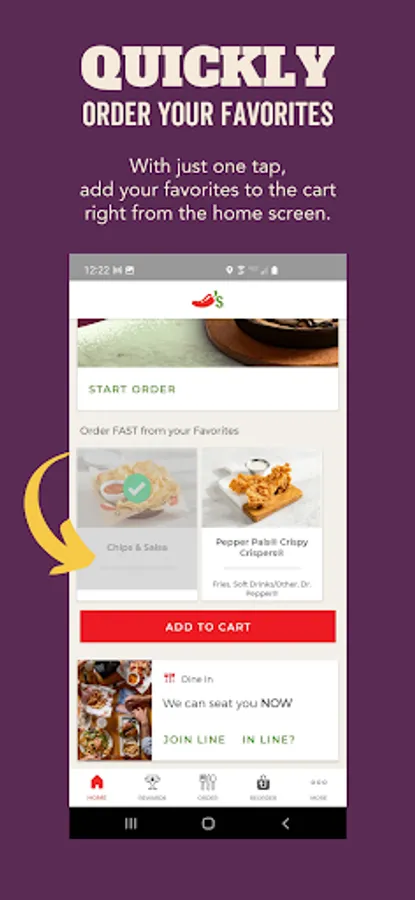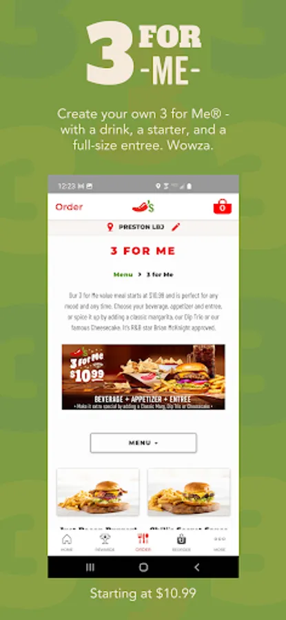 Hi, welcome to the Chili’s Android app! Easily order your favorite Chili’s menu items (now featuring Delivery!), find your nearest Chili’s, add your name to the wait list, check your available Rewards and more all within the most delicious app you’ll ever download.