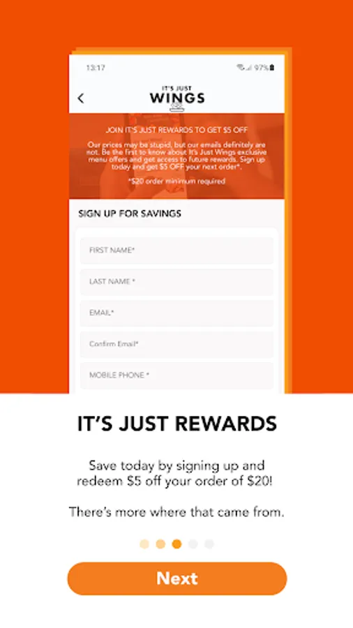 Introducing the only app you’ll need to get killer wings at stupid prices for delivery or pickup. Download the new It’s Just Wings app to gain access to our wings on the fly.