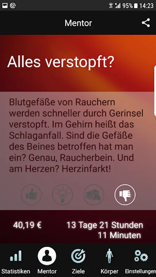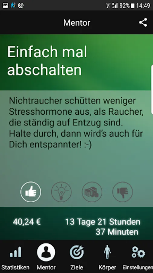 The first step for Non smoking is done by downloading this free, ad-free smoke-free app. The smoke free app has helped many users and users quit smoking, was developed by physicians and supported with individual motivational aids the way to the Non smoking. Even if the stop smoking an effort, we hope you enjoy with smoke free!
