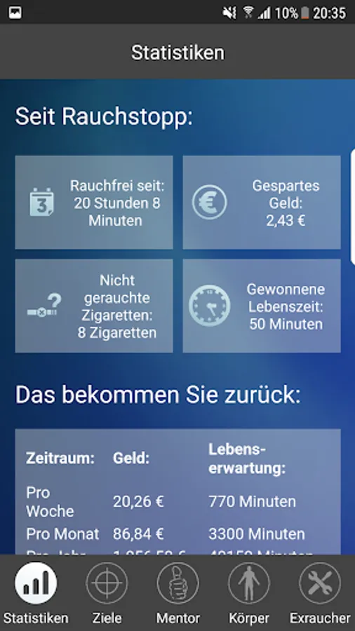 The first step for Non smoking is done by downloading this free, ad-free smoke-free app. The app has helped many users and users quit smoking, was developed by physicians and supported with individual motivational aids the way to the Non smoking. Even if the stop smoking an effort, we wish you much fun with the Smokefree motivator!