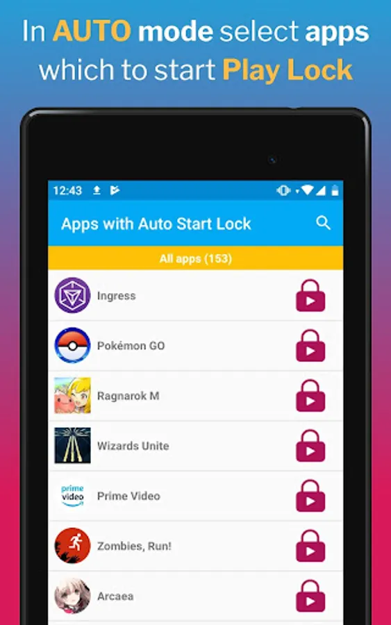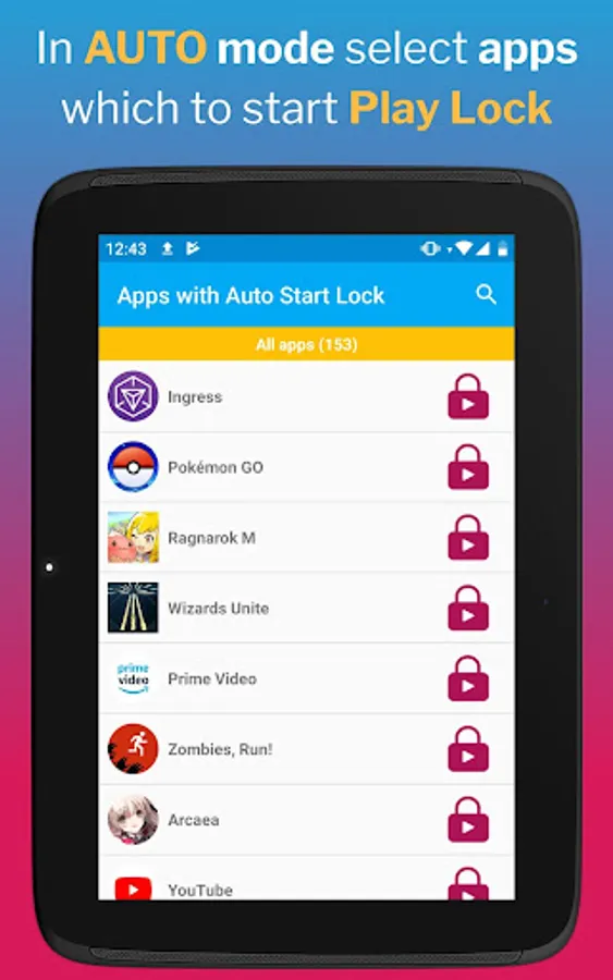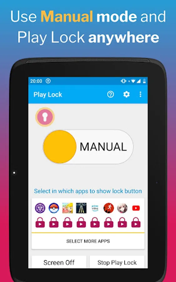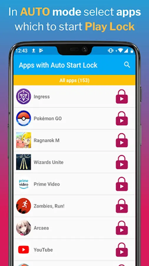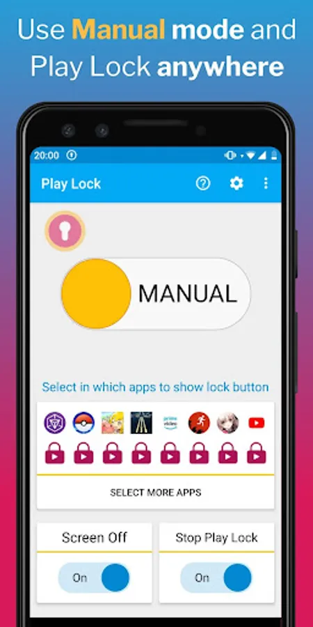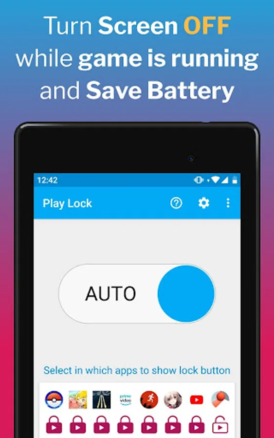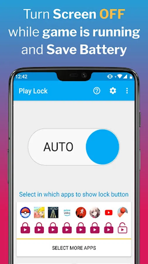 - Use AUTO mode to run Play Lock only on apps that you have pre-selected, and have Play Lock locking notification only when you need it.