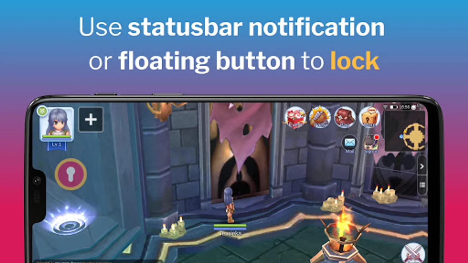 - Locks screen and buttons , so that you don't get out of game unintentionally.