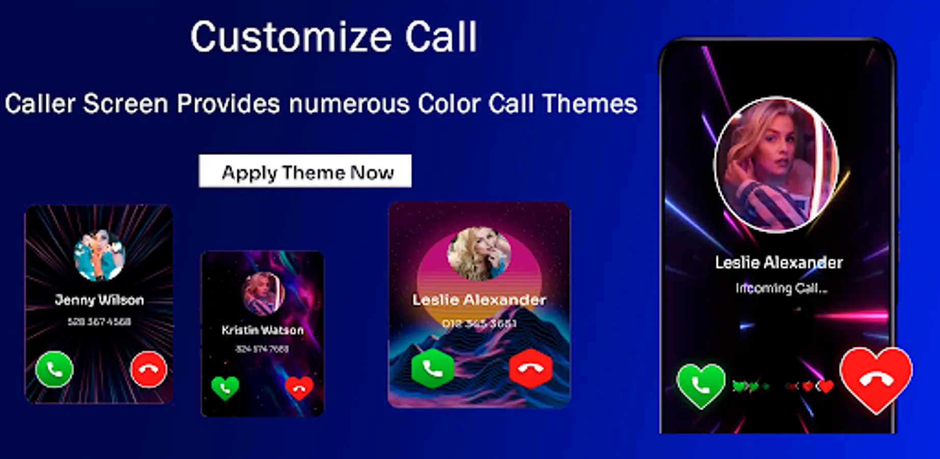 - Customize your incoming call screen themes with available images - screen theme color or videos in your gallery