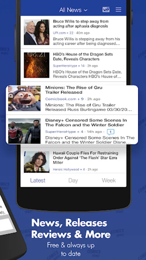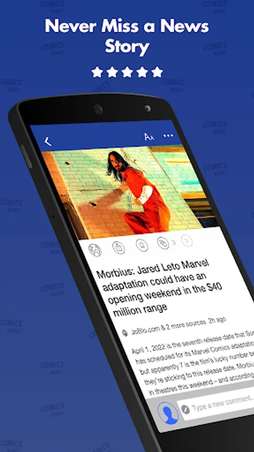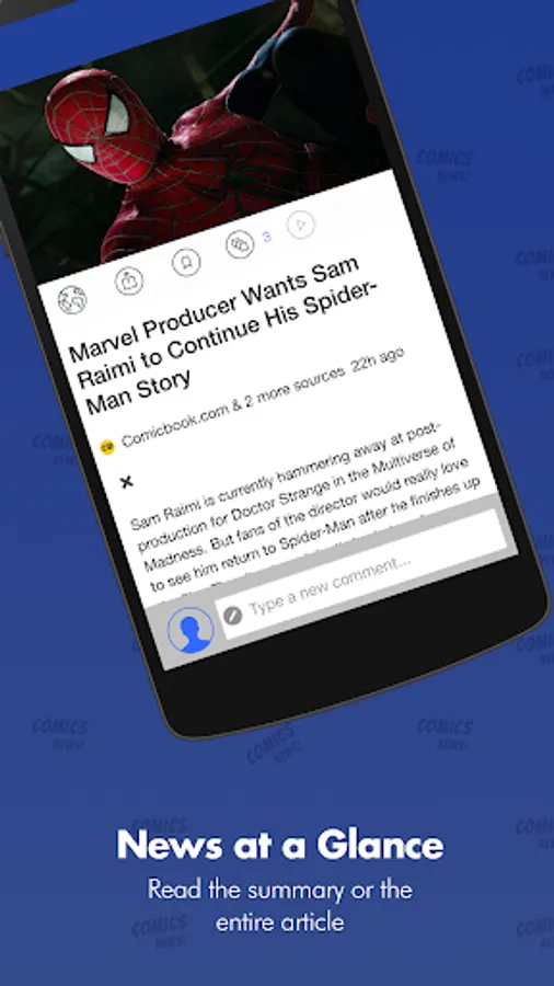 * Full coverage, curated from the top comics and super heroes news sites! See all the different sources that covered any story with a single tap (this is our super cool 'more coverage' feature). We cover comics by DC, Marvel, and others - get the full picture in one app!