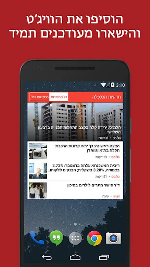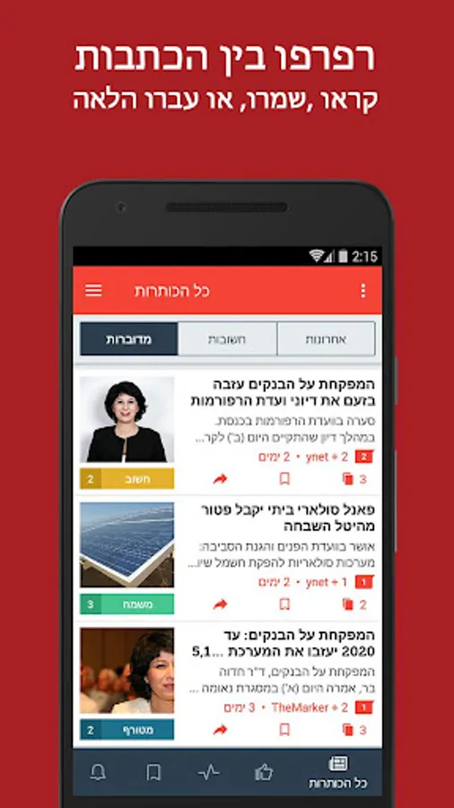 Concentration of all the major newspapers - The Marker, Kalkalist, News, Mako, and these and more!