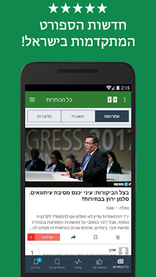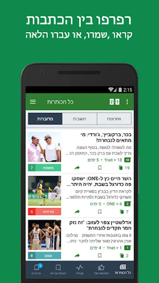 The app is unique in that it knows automatically arrange all the sports articles in the order of their importance to the Israeli reader. Try for yourself and see!