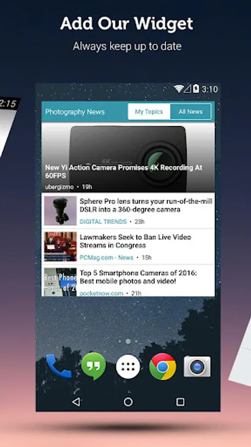 - Your own personal news feed - whether you like Nikon or a Canon or are interested in stealth or video photography - you can easily make it your own - select your favorite brand/topics and/or block topics you don't want