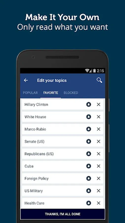 * Your very own news feed! Choose your favorite topics or simply block topics you don't like