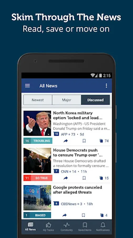 The app brings news from hand-picked, established media sources, from all across the political spectrum. This allows you to get a range of viewpoints in one place. We suggest and encourage prudent news consumption - the truth is never found exclusively in one source.