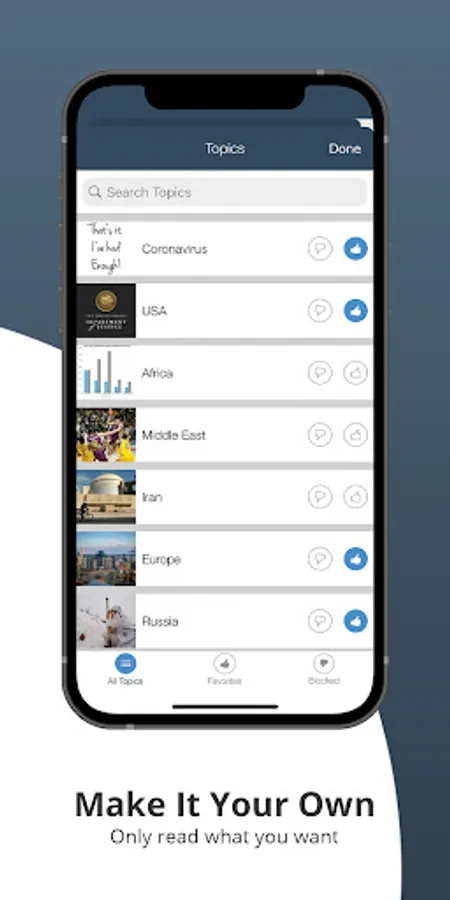 Interested in Syria & Israel updates only? Just add them to My Topics with a tap. Want to know about everything BUT the Middle East? No problem - just block this topic and it'll be filtered out from your feed! Block any news source, just long-tap the article