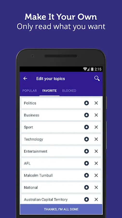 Saw a news source you don't like? Long tap on the article and block it forever.