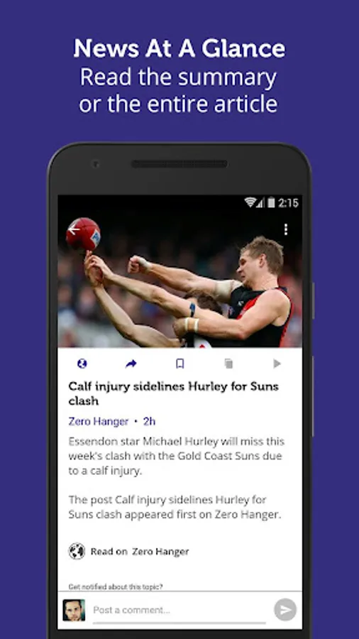 Fire the app for the first time – and immediately see the current “must-know” news - from all major news outlets, including ABC News, thewest.com.au, brisbanetimes, The Sydney Morning Herald, News.com.au, Perth Now, The Age, Daily Telegraph, Herald Sun, The Conversation, Yahoo, Fox Sports and many others.