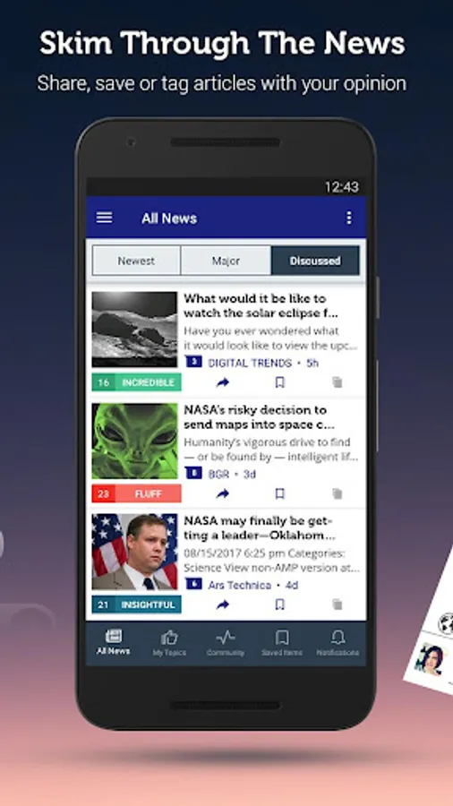 Fifth - A community of space lovers! An in app commenting system, article tagging, reputation points and badges!