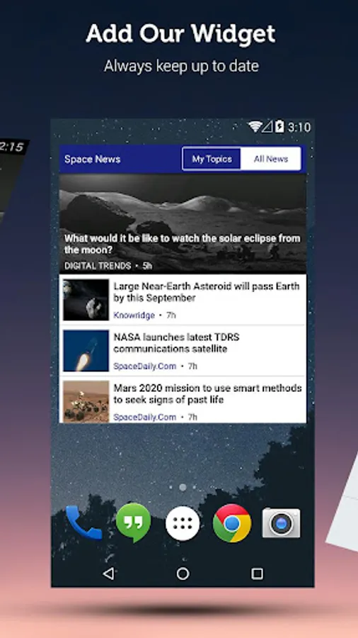 First - we give you a full coverage of the entire space and astronomy sections of the news! What does this mean? We have gathered dozens of news sources for you covering only these topics and brought them all to you in a single app, simple and easy to use.