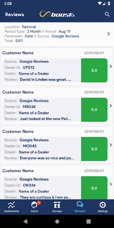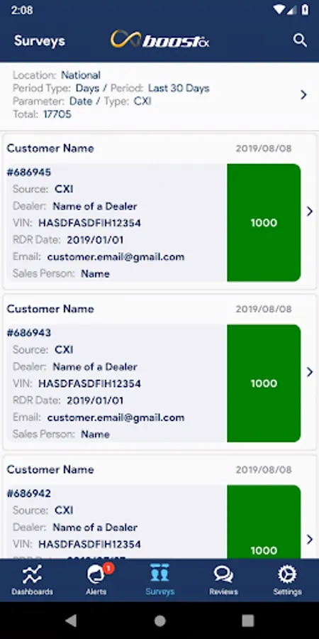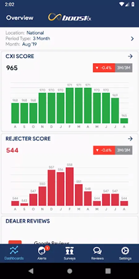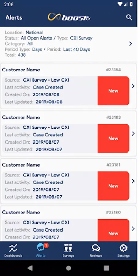 The boostCX app will allow users to manage their alerts with the ability to respond to customers when a survey is completed and customer follow up is needed. Users will also be able to review and monitor survey completion by their customers as well as view and monitor their overall scores.