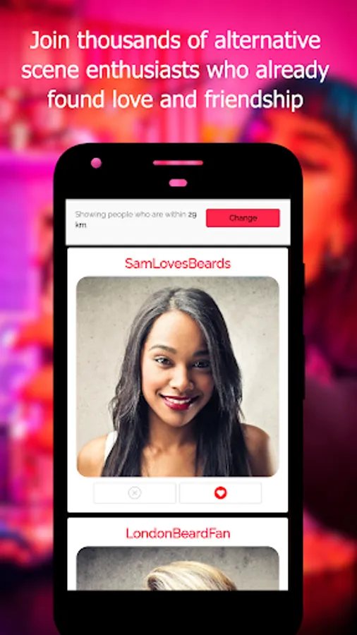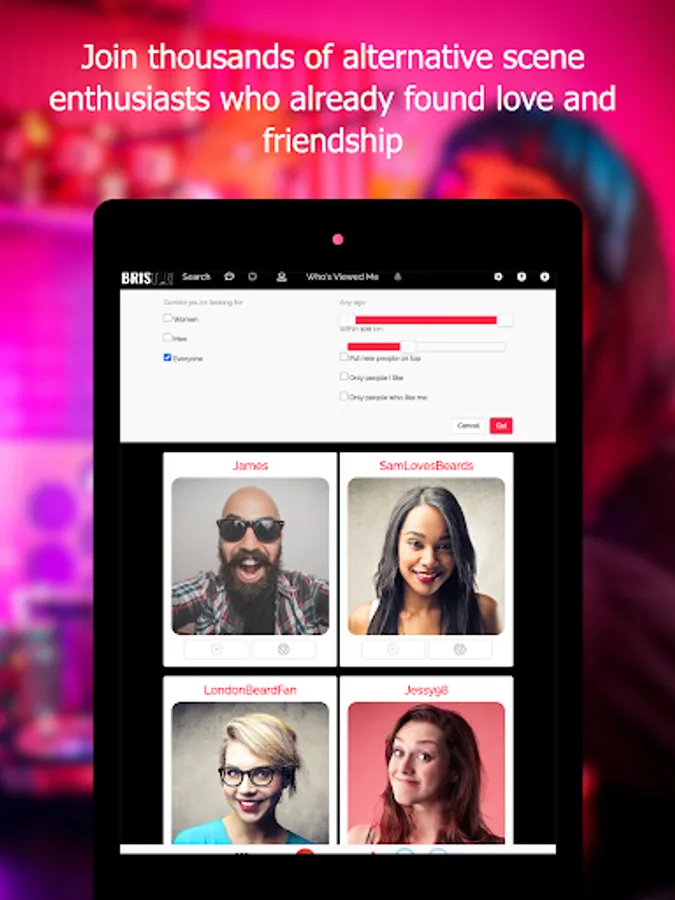 Login with Facebook or email, and after answering the all important "do you have a beard" question you can start looking for your perfect partner. You can filter by gender, distance, and age, and instantly be matched with people looking for you.