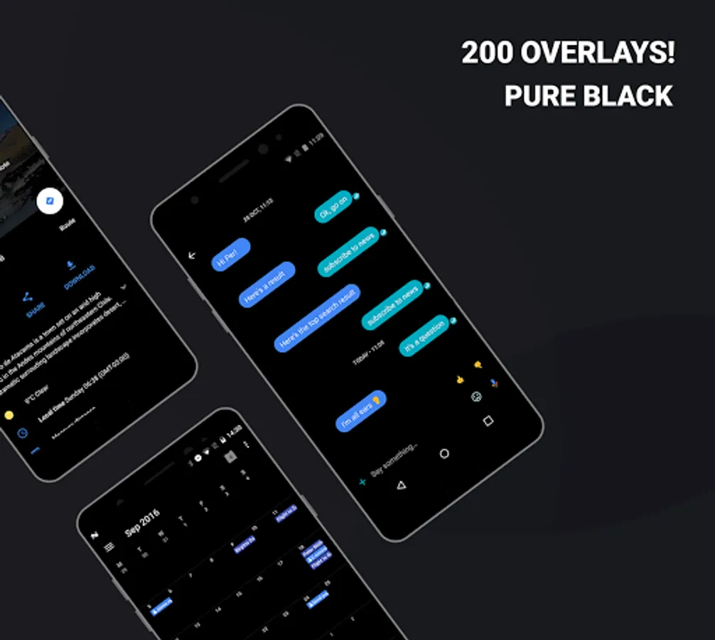 Swift Black is a Substratum theme with 200+ handcrafted overlays, using pitch black for the backgrounds and preserving the apps original accent and primary colors wherever possible. It looks awesome on OLED screens and lets you save some battery life too! It supports the following systems: