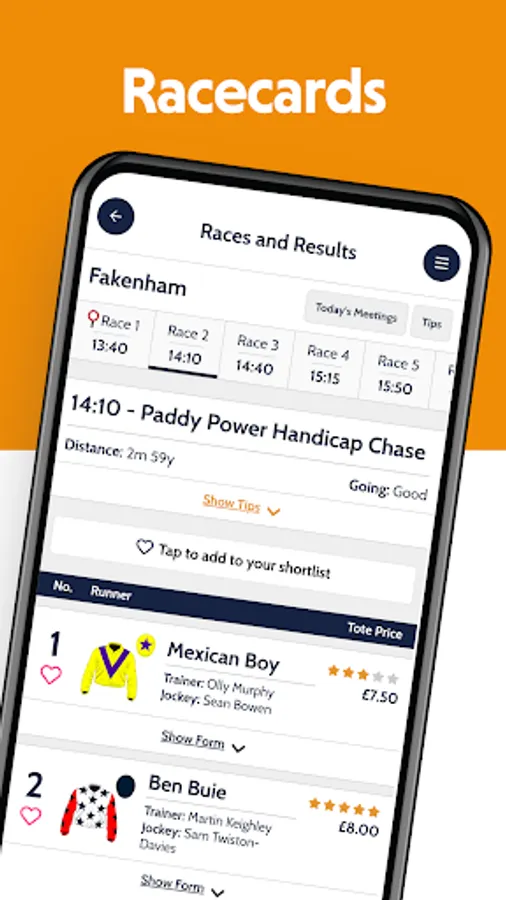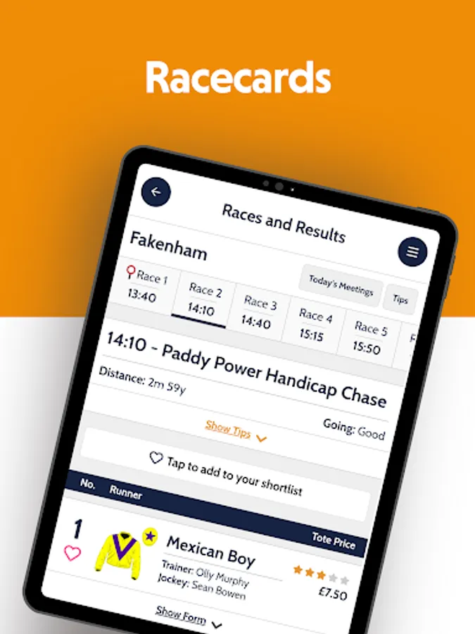 Save all your favourite horses that are racing that day. The horse, it's race number and track will then all appear in your shortlist. Check out the jockey skills and then tap the heart to save for later. Keep an eye on all your shortlisted horses from one easy place.