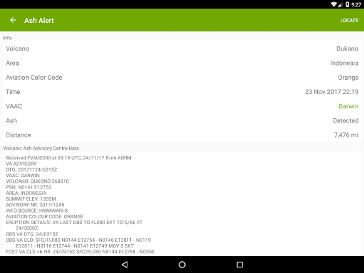 # Notifies of ash clouds and displays the clouds and the forecasts on the map.