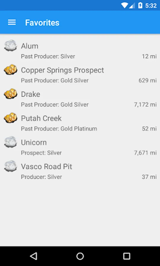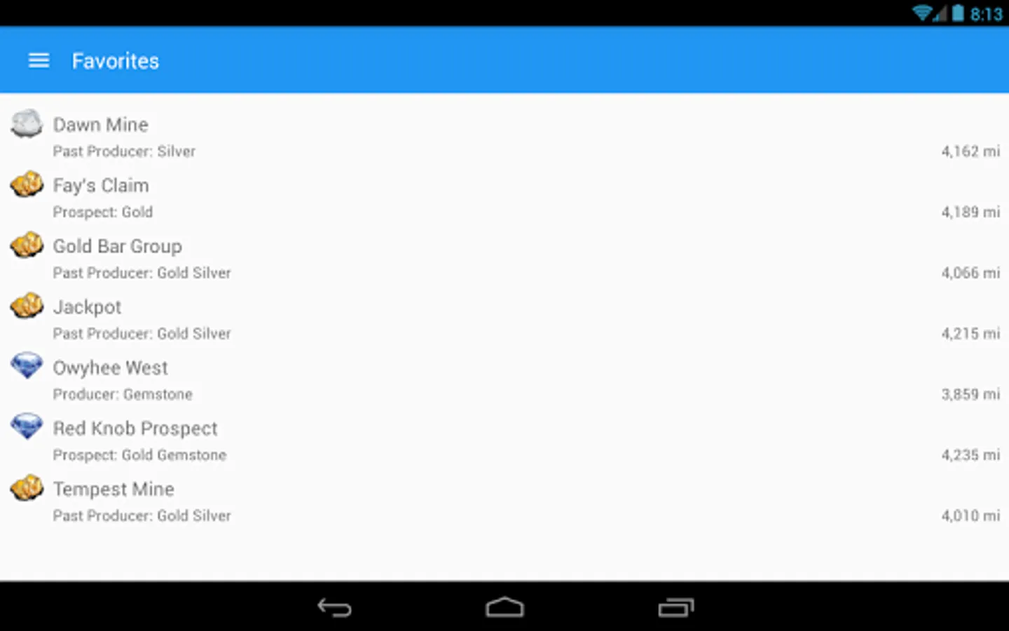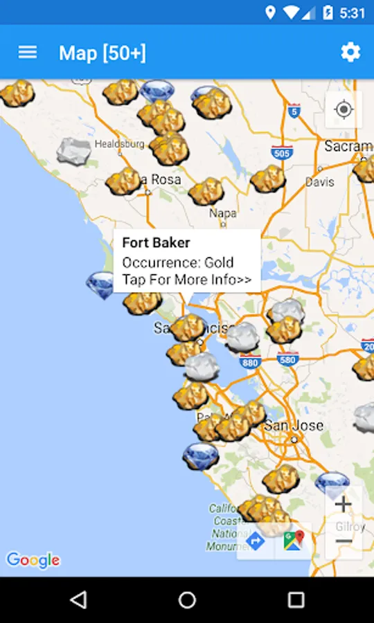# Locate gold, silver, platinum and gemstones locations on a map (Complete gold and gem datasets are available via in-app purchases).
