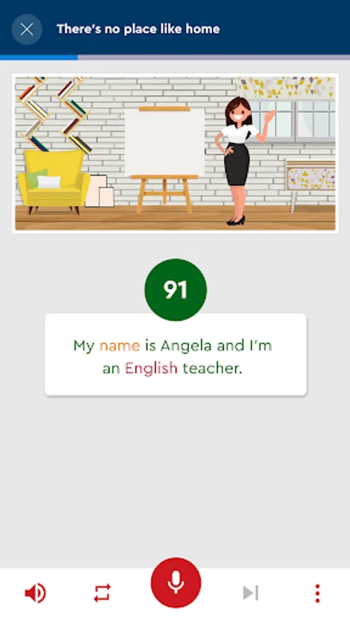 Through an advanced voice recognition system, the student speaks English from the first unit and compares his pronunciation with the speech of more than 100 natives from different locations.