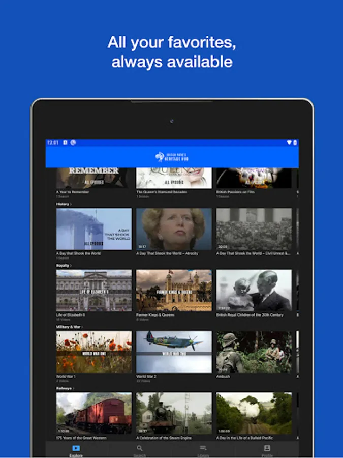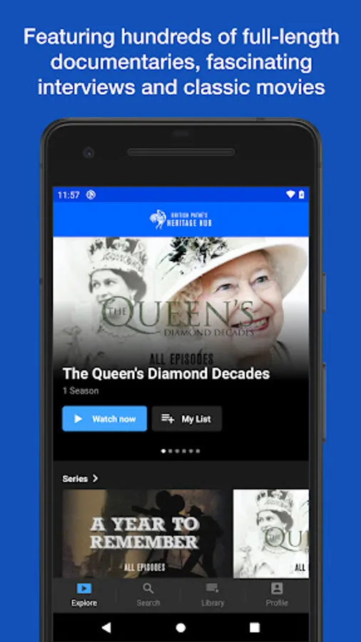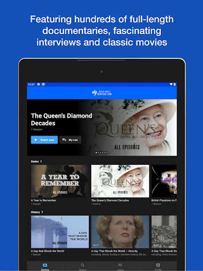 British Pathé's Heritage Hub is an award-winning online video streaming service featuring hundreds of full-length documentaries. It is designed for specialist audiences such as history buffs, royal watchers, cinema aficionados and train enthusiasts.