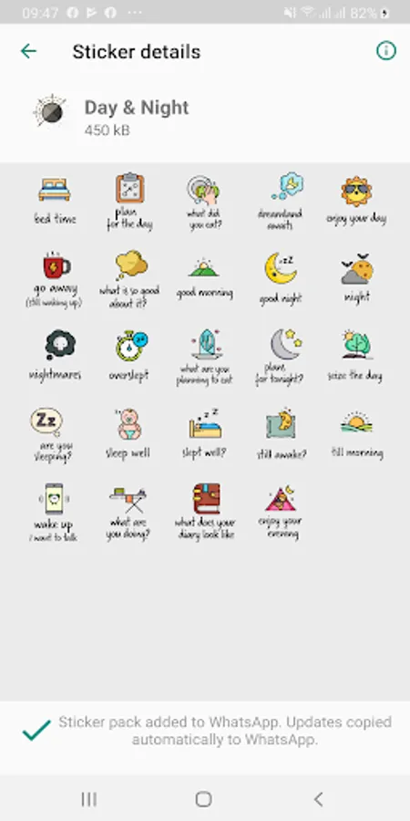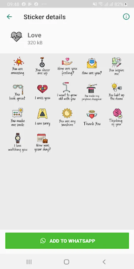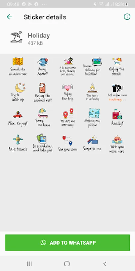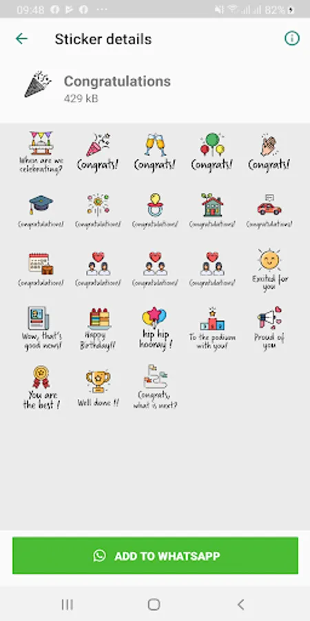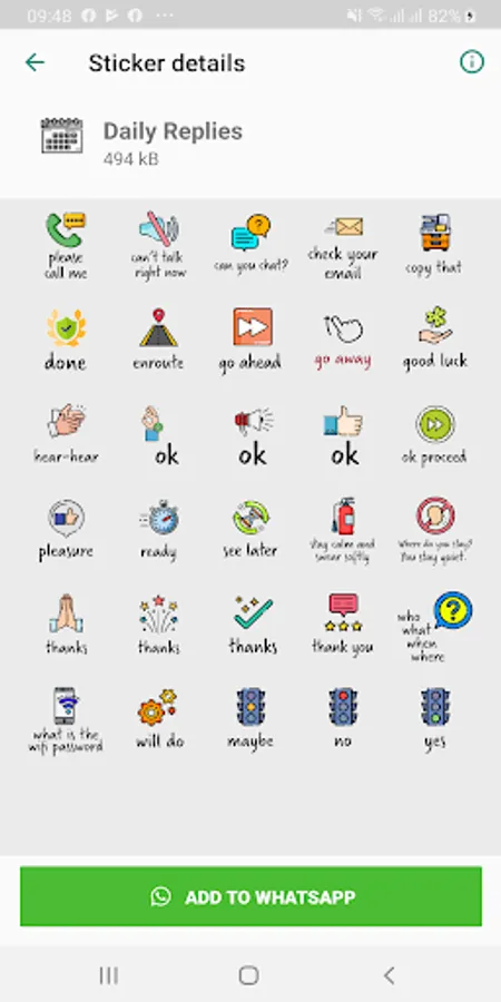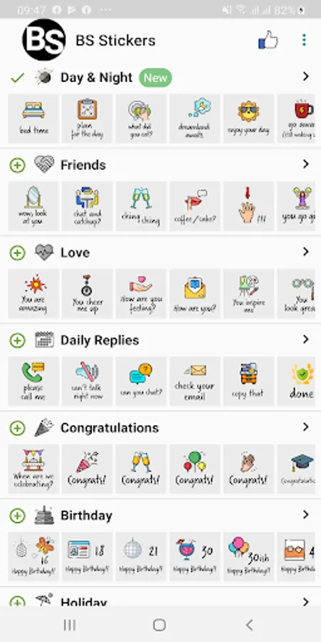 A collection of 224 stickers in English, that you can use for WhatsApp. Quirky, even cheeky, but definitely will make your messaging more fun. 10 collections: Festive Season, Day & Night Greetings, Friends, Love, Daily Replies, Congratulations, Birthday, Holiday, Encouragement and Condolences. Do we hear a BS ("basically stunning"!)?