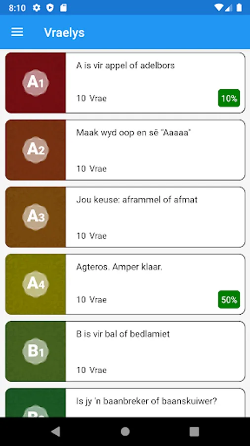 Not for the faint hearted. Test your knowledge of difficult Afrikaans words and share your accomplishment with your friends.