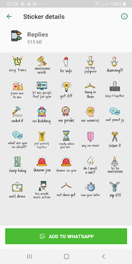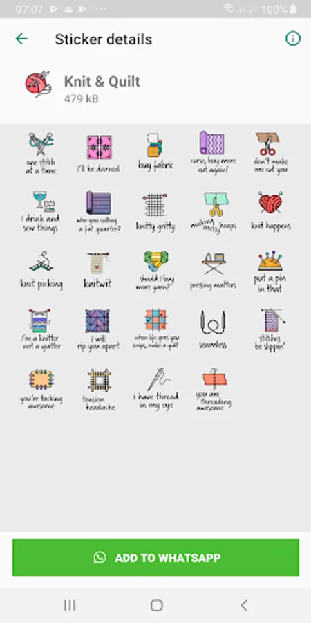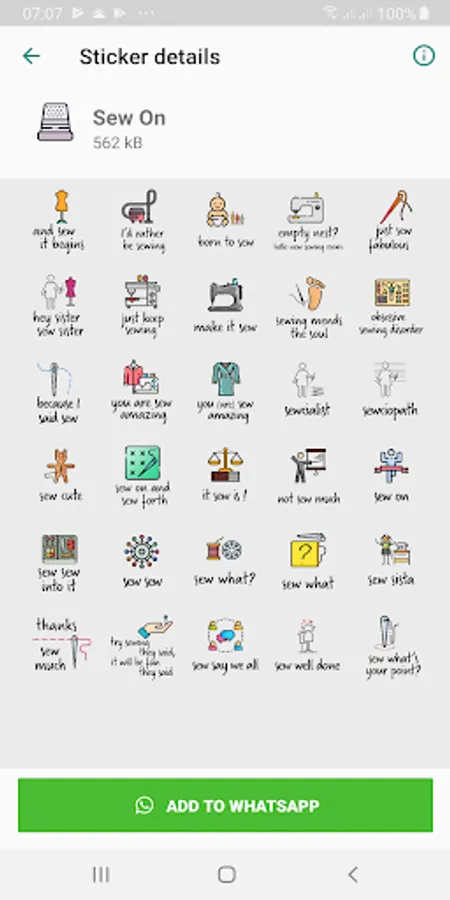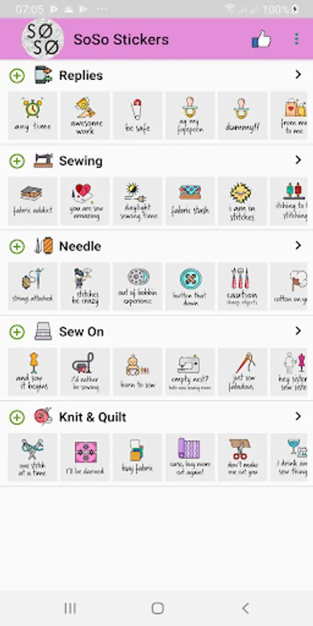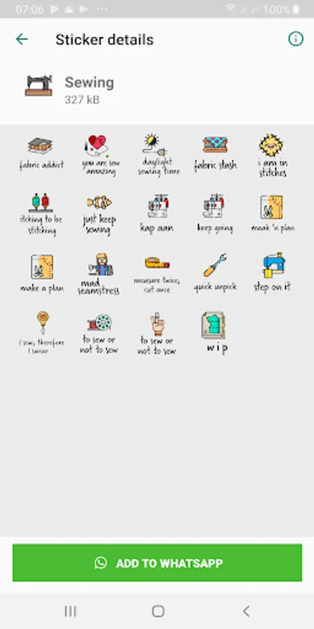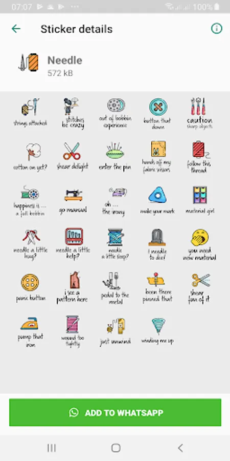A collection of 132 stickers for WhatsApp. Fun replies and a packs dedicated to sewing.