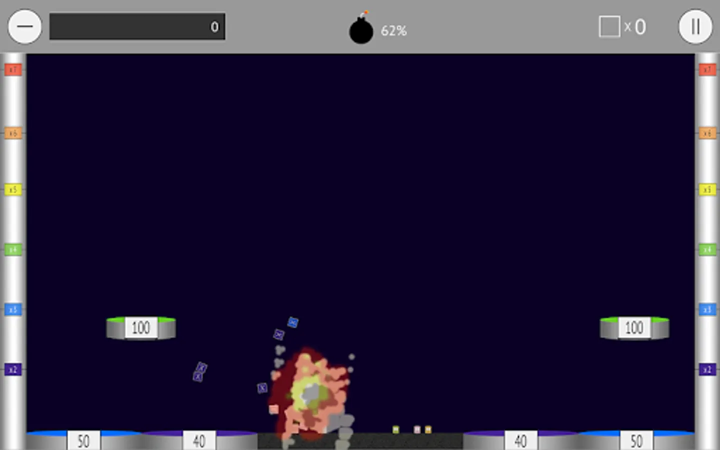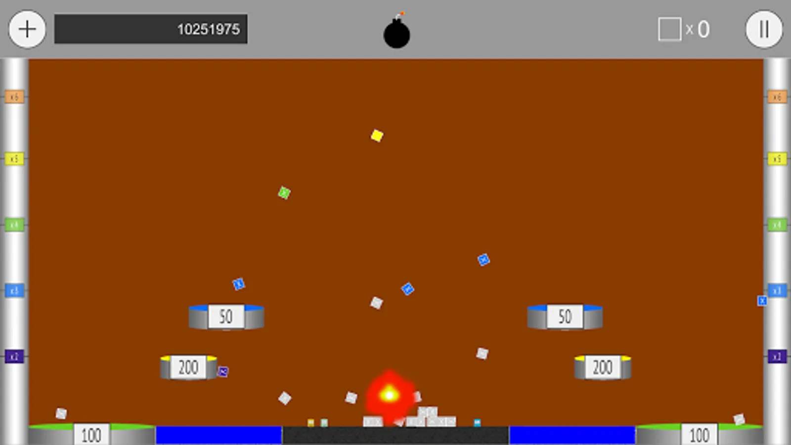 Placing bombs under blocks launch them higher. The higher a block goes once exploded, the greater the score multiplier the block earns.