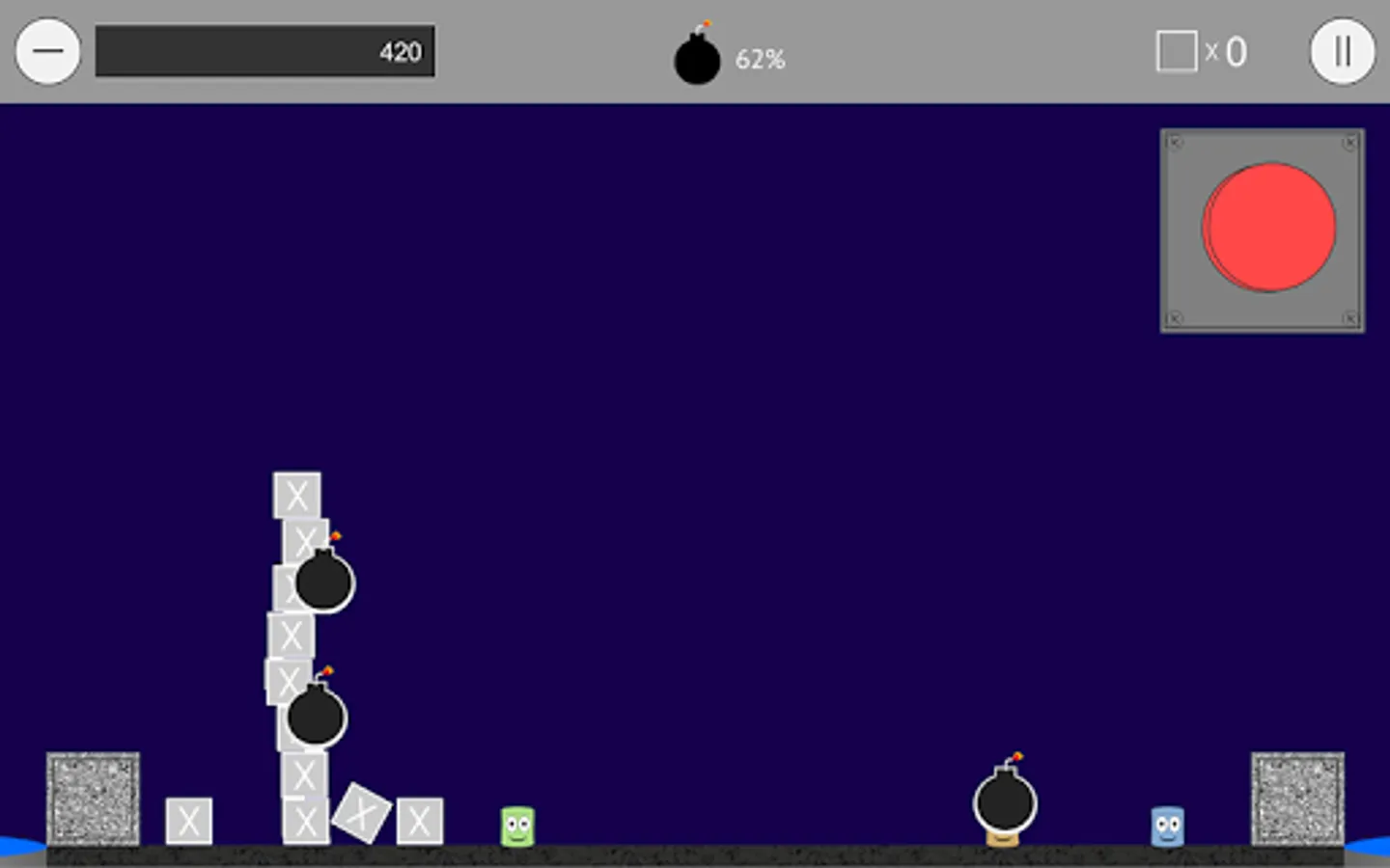 50 challenging levels of explosive fun. Stack blocks. Blow stacks up. Launch blocks high to earn score multipliers. Land blocks on score pads to earn points.